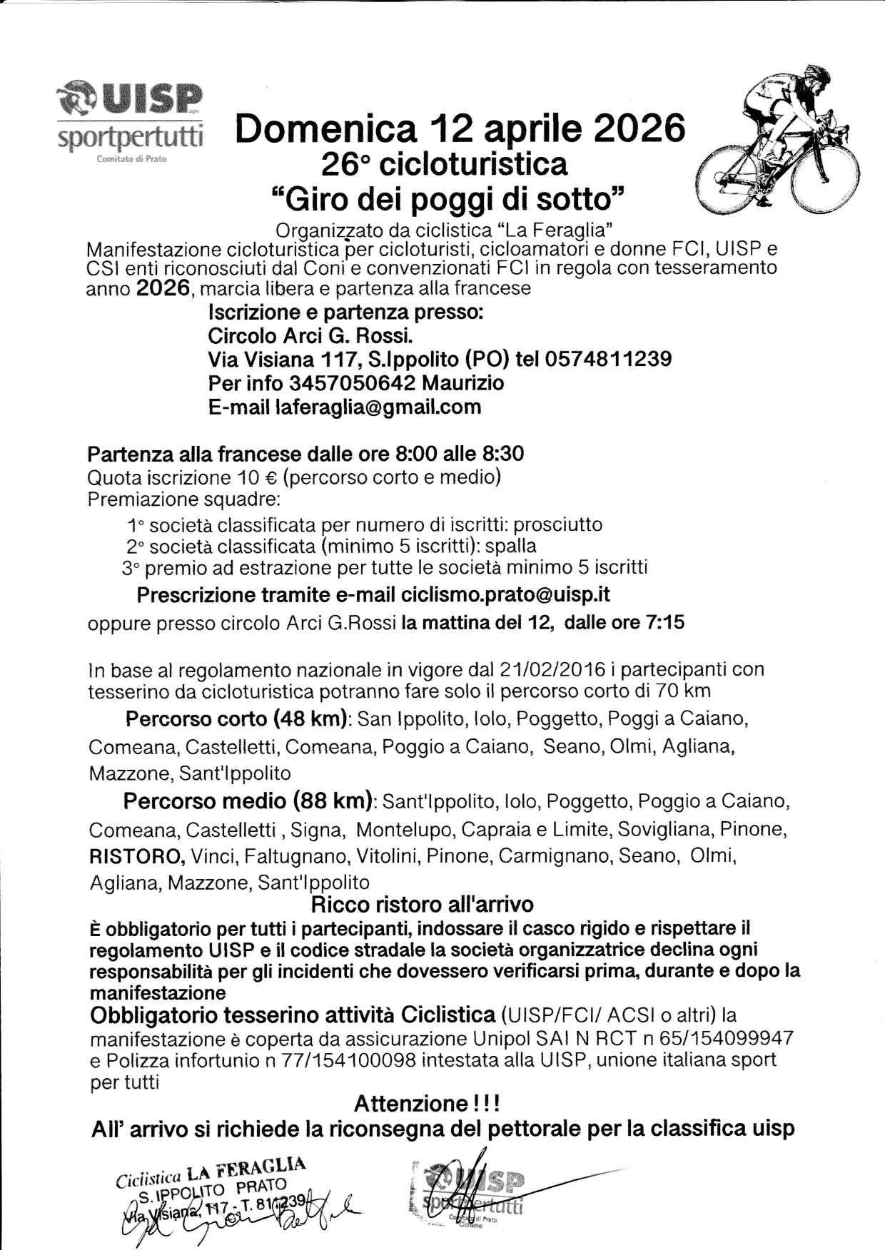 Organizzato da ciclistica “La Feraqlia” UISP Per tutti